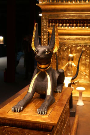 Figurka boha Anubise z hrobky Tutanchamona, ΧΙV století před naším letopočtem. E.