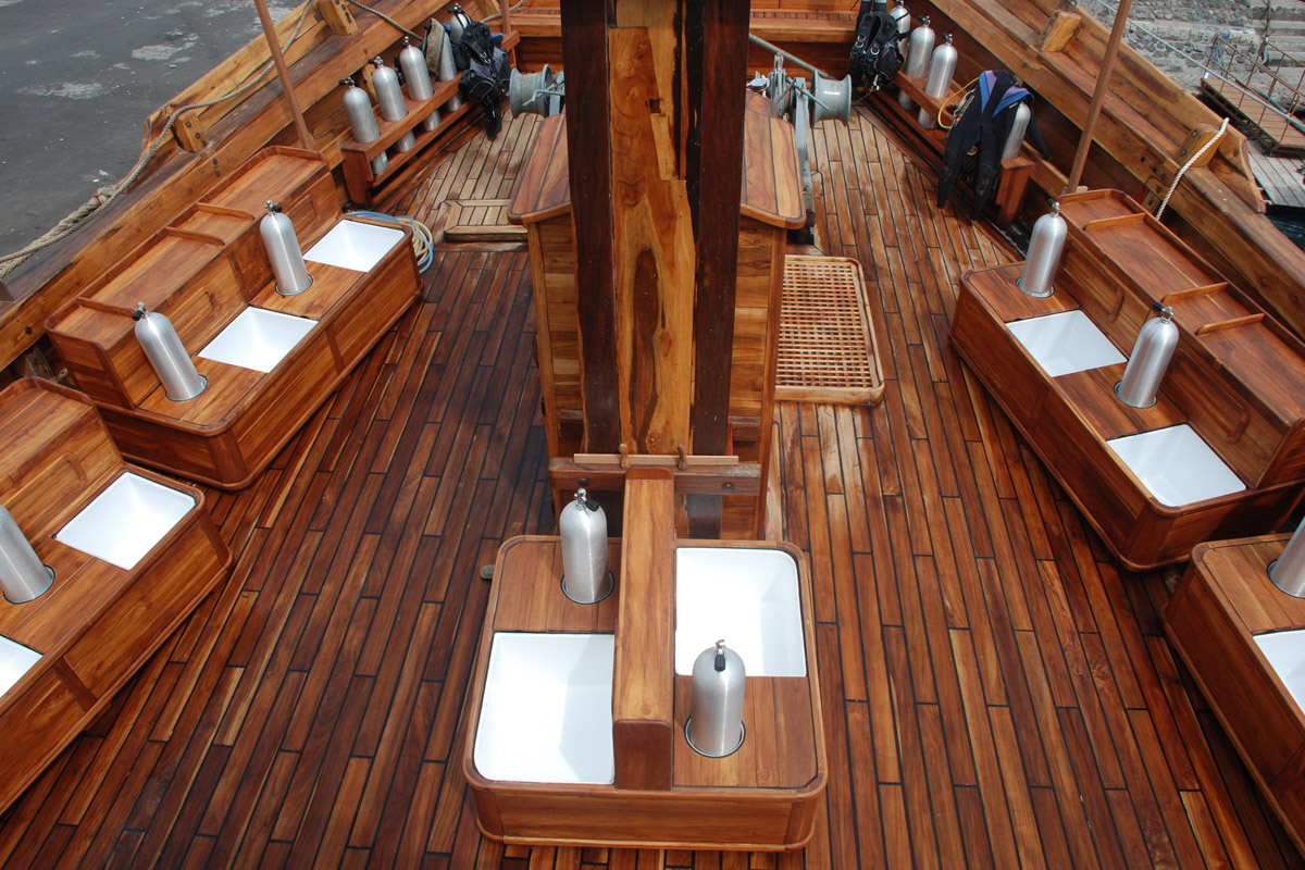 Polootevřená paluba se nachází na přídi lodi. Vzhledem k tomu, že skupina na palubě jachty je malá, má každý potápěč k dispozici více než metr prostoru pro instalaci tlakové láhve a uložení vybavení do pohodlných hlubokých boxů. Po obvodu paluby jsou umístěny nádrže na odsolování zařízení. Potápění se provádí ze speciálních potápěčských člunů, ke kterým je přístup po žebříku z boků jachty. Damai I nabízí specializovaný a la carte potápěčský systém bez omezení času nebo počtu ponorů a na rozdíl od většiny ostatních jachet na palubě se neřídí přesným časovým harmonogramem.